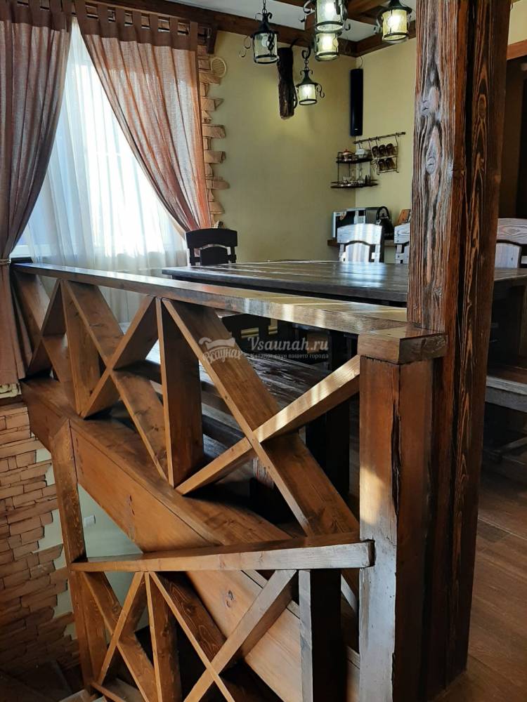 5) гостевая комната с большим столом, выполненным из настоящего дуба и массивные стулья